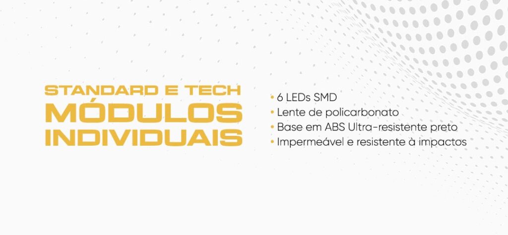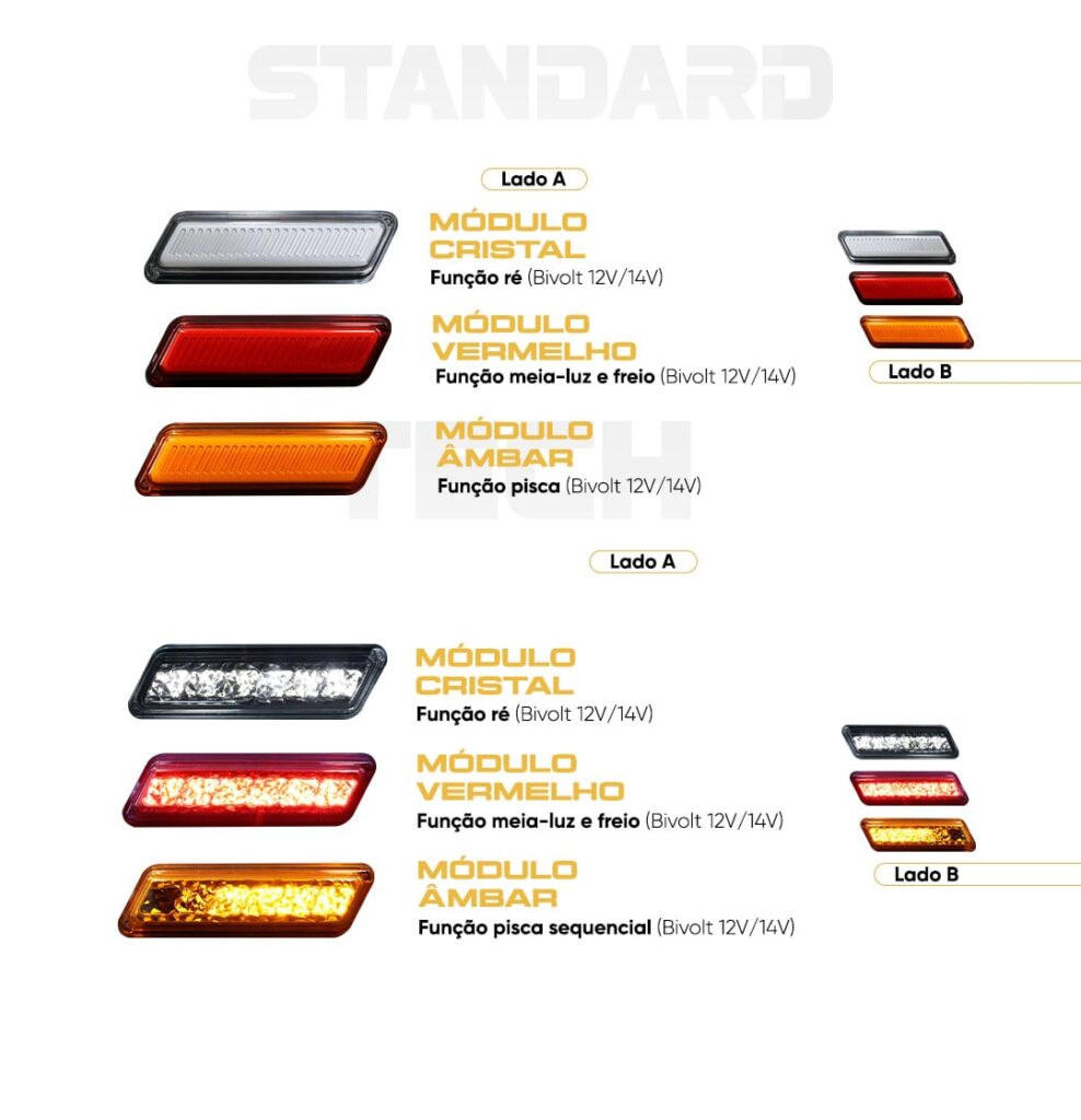 Cada módulo ré, freio, pisca e meia-luz é separado, permitindo criar configurações únicas e personalizadas para cada tipo de carreta, reboque ou máquina.